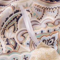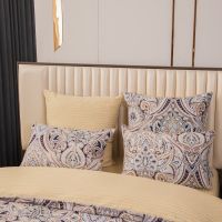 Для более комфортного использования пододеяльник и наволочки снабжены скрытыми молниями. Простынь сшита из целого полотна без шва посередине, а большие размеры простыни решают проблему с заправкой постели.