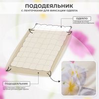 Для более комфортного использования пододеяльник и наволочки снабжены скрытыми молниями. Простынь сшита из целого полотна без шва посередине, а большие размеры простыни решают проблему с заправкой постели.