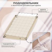 Для более комфортного использования пододеяльник и наволочки снабжены скрытыми молниями. Простынь сшита из целого полотна без шва посередине, а большие размеры простыни решают проблему с заправкой постели.