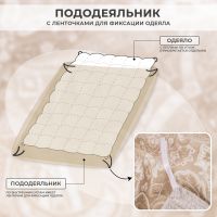 Для более комфортного использования пододеяльник и наволочки снабжены скрытыми молниями. Простынь сшита из целого полотна без шва посередине, а большие размеры простыни решают проблему с заправкой постели.
