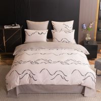 Для более комфортного использования пододеяльник и наволочки снабжены скрытыми молниями. Простынь сшита из целого полотна без шва посередине, а большие размеры простыни решают проблему с заправкой постели.