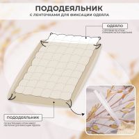 Для более комфортного использования пододеяльник и наволочки снабжены скрытыми молниями. Простынь сшита из целого полотна без шва посередине, а большие размеры простыни решают проблему с заправкой постели.