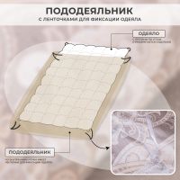 Для более комфортного использования пододеяльник и наволочки снабжены скрытыми молниями. Простынь сшита из целого полотна без шва посередине, а большие размеры простыни решают проблему с заправкой постели.