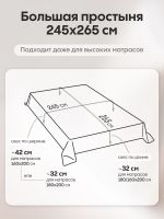 Пододеяльник: 180х215 см 1 шт. (на молнии) Простыня: 245х265 см 1 шт. Наволочки: 4 шт (50х70 2 шт. и 70х70 2 шт., с запахом)