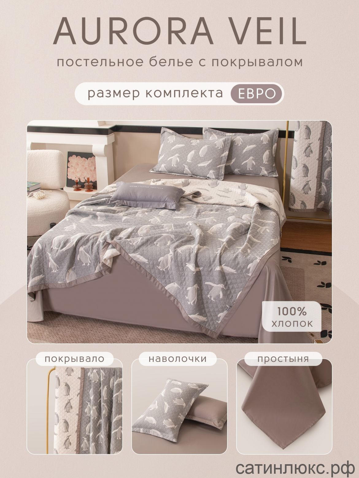 Комплект постельного белья Сатин Aurora Veil с Покрывалом AV001