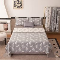 Покрывало выполнено из жаккардового муслина с декоративной простёжкой, формирующей утончённый рельефный узор. Ткань отличается мягкостью, лёгким благородным блеском и изысканной текстурой. Завершает композицию широкий кант в тон простыни, который визуально объединяет все элементы комплекта и придаёт образу гармоничную завершённость.