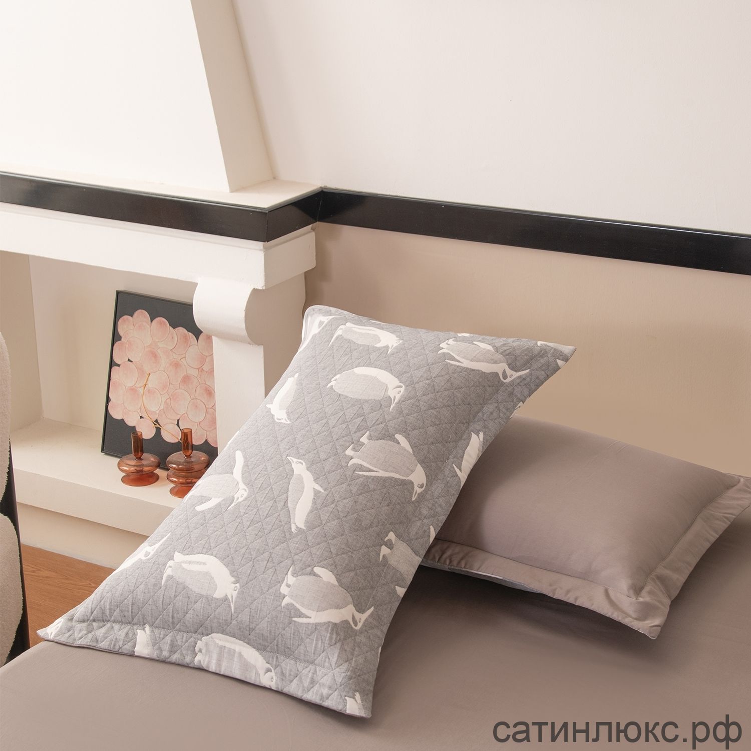 В комплект также входят однотонная простыня из люкс-сатина и две двусторонние наволочки с широким кантом по периметру. Одна сторона наволочек выполнена из жаккардового муслина с тем же изящным узором, что и покрывало, другая - из гладкого люкс-сатина, что даёт возможность комбинировать и создавать новые вариации оформления постели.
