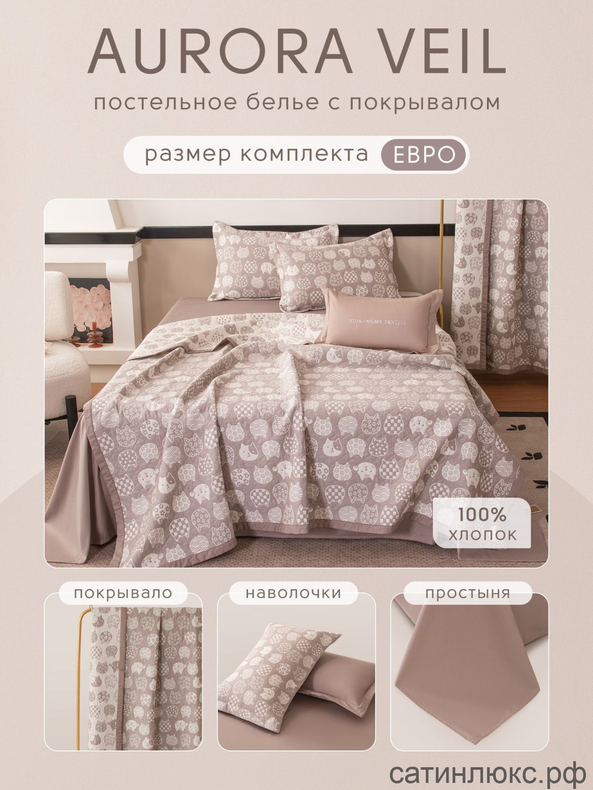 Комплект постельного белья Сатин Aurora Veil с Покрывалом AV003