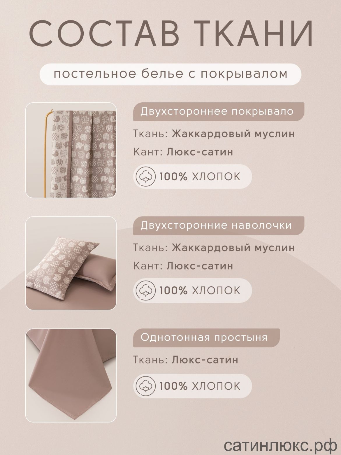 Жаккардовый муслин 100% хлопок/Люкс-Сатин 100% хлопок | наполнитель покрывала: 100% эковолокно микрогель