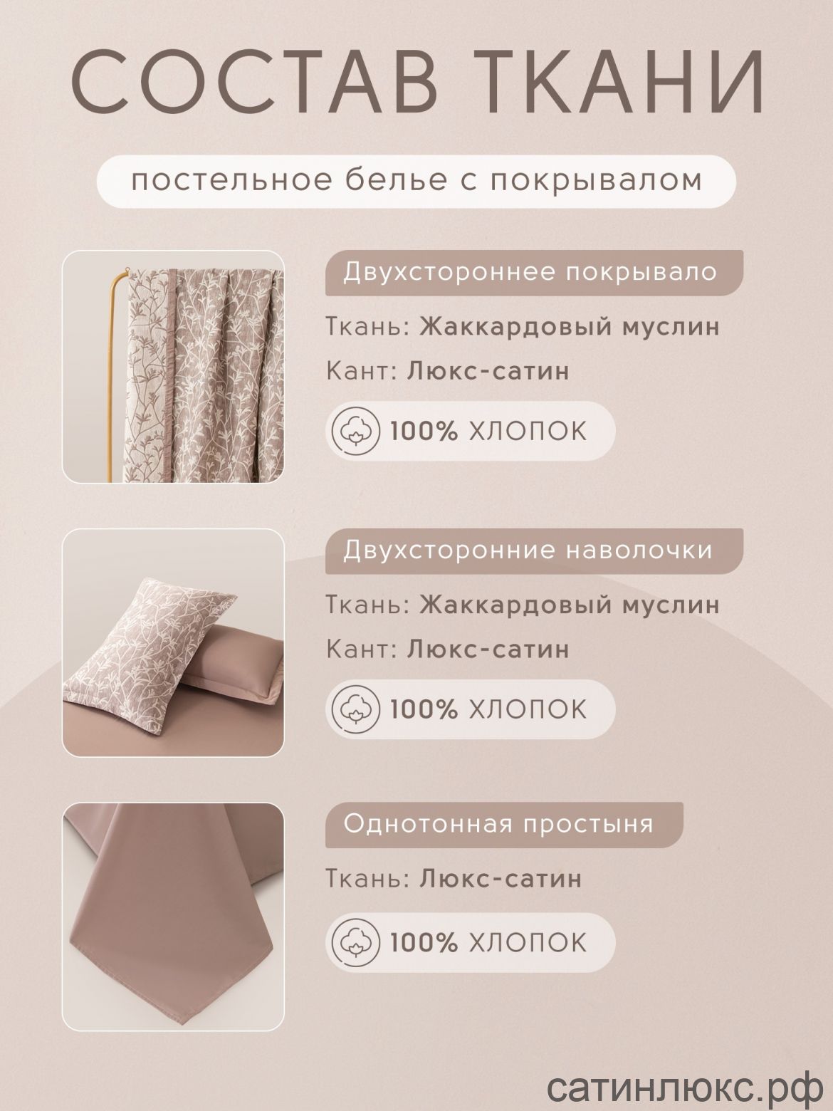 Жаккардовый муслин 100% хлопок/Люкс-Сатин 100% хлопок | наполнитель покрывала: 100% эковолокно микрогель