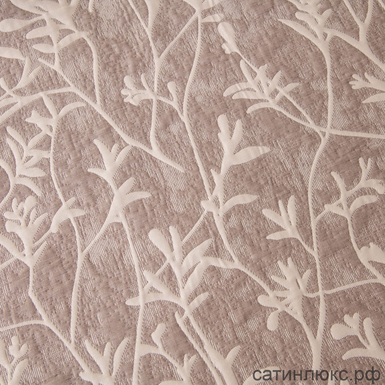Покрывало выполнено из жаккардового муслина с декоративной простёжкой, формирующей утончённый рельефный узор. Ткань отличается мягкостью, лёгким благородным блеском и изысканной текстурой. Завершает композицию широкий кант в тон простыни, который визуально объединяет все элементы комплекта и придаёт образу гармоничную завершённость.