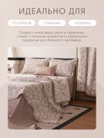Реверсивный дизайн покрывала с инверсией оттенков позволяет выбрать настроение пространства: на одной стороне - светлый фон с мягким контрастным рисунком, на другой - более тёмный фон со светлым узором. Игра фактур и тонов делает покрывало выразительным акцентом в интерьере и позволяет легко менять облик спальни.