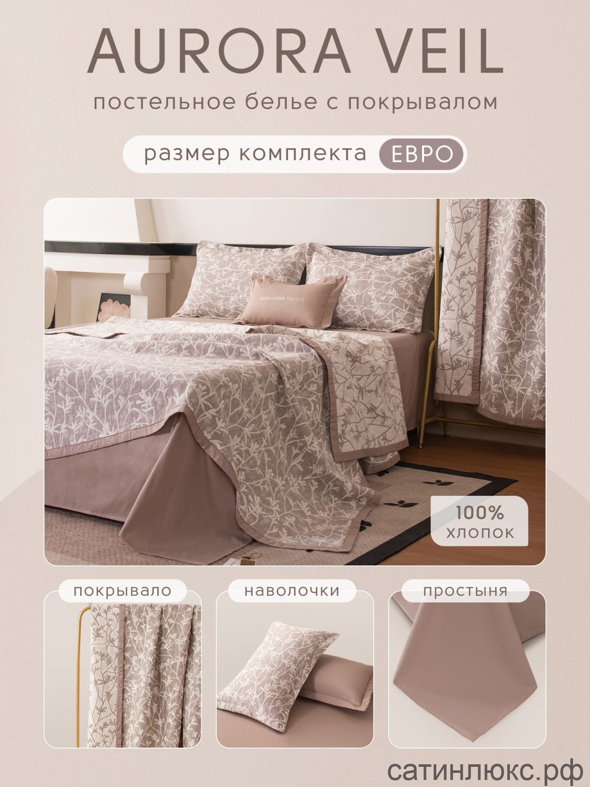 Комплект постельного белья Сатин Aurora Veil с Покрывалом AV007