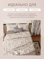 Реверсивный дизайн покрывала с инверсией оттенков позволяет выбрать настроение пространства: на одной стороне - светлый фон с мягким контрастным рисунком, на другой - более тёмный фон со светлым узором. Игра фактур и тонов делает покрывало выразительным акцентом в интерьере и позволяет легко менять облик спальни.