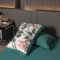 Воздухопроницаемость и гладкость этого материала гарантируют идеальный микроклимат для сна, позволяя коже дышать и предотвращая накопление влаги. Благодаря специальной обработке ткань не садится после стирки, не линяет и сохраняет свою яркость даже после многочисленных стирок.