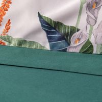 Ткань компаньон: Верх пододеяльника - мерсеризованный сатин, низ пододеяльника - сатин. Наволочки 50*70 см и 70*70 см с разных сторон разной расцветки. Пододеяльник с разных сторон разного цвета. Простыня однотонная такого же цвета, как низ пододеяльника.