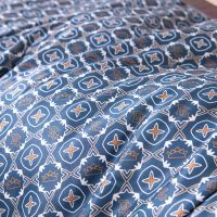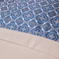 Ткань компаньон: Верх пододеяльника - мерсеризованный сатин, низ пододеяльника - сатин. Наволочки 50*70 см и 70*70 см с разных сторон разной расцветки. Пододеяльник с разных сторон разного цвета. Простыня однотонная такого же цвета, как низ пододеяльника.