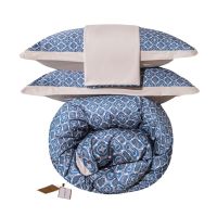 Пододеяльник: 180х215 см 1 шт. (на молнии) Простыня: 245х265 см 1 шт. Наволочки: 70х70 см 2 шт. (на молнии) и 50х70 см 2 шт. (с запахом)