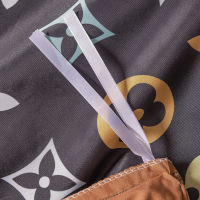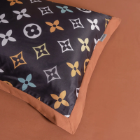 Ткань компаньон: Верх пододеяльника - мерсеризованный сатин, низ пододеяльника - сатин. Наволочки 50*70 см и 70*70 см с разных сторон разной расцветки. Пододеяльник с разных сторон разного цвета. Простыня однотонная такого же цвета, как низ пододеяльника.