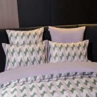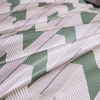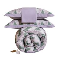 Ткань компаньон: Верх пододеяльника - мерсеризованный сатин, низ пододеяльника - сатин. Наволочки 50*70 см и 70*70 см с разных сторон разной расцветки. Пододеяльник с разных сторон разного цвета. Простыня однотонная такого же цвета, как низ пододеяльника.