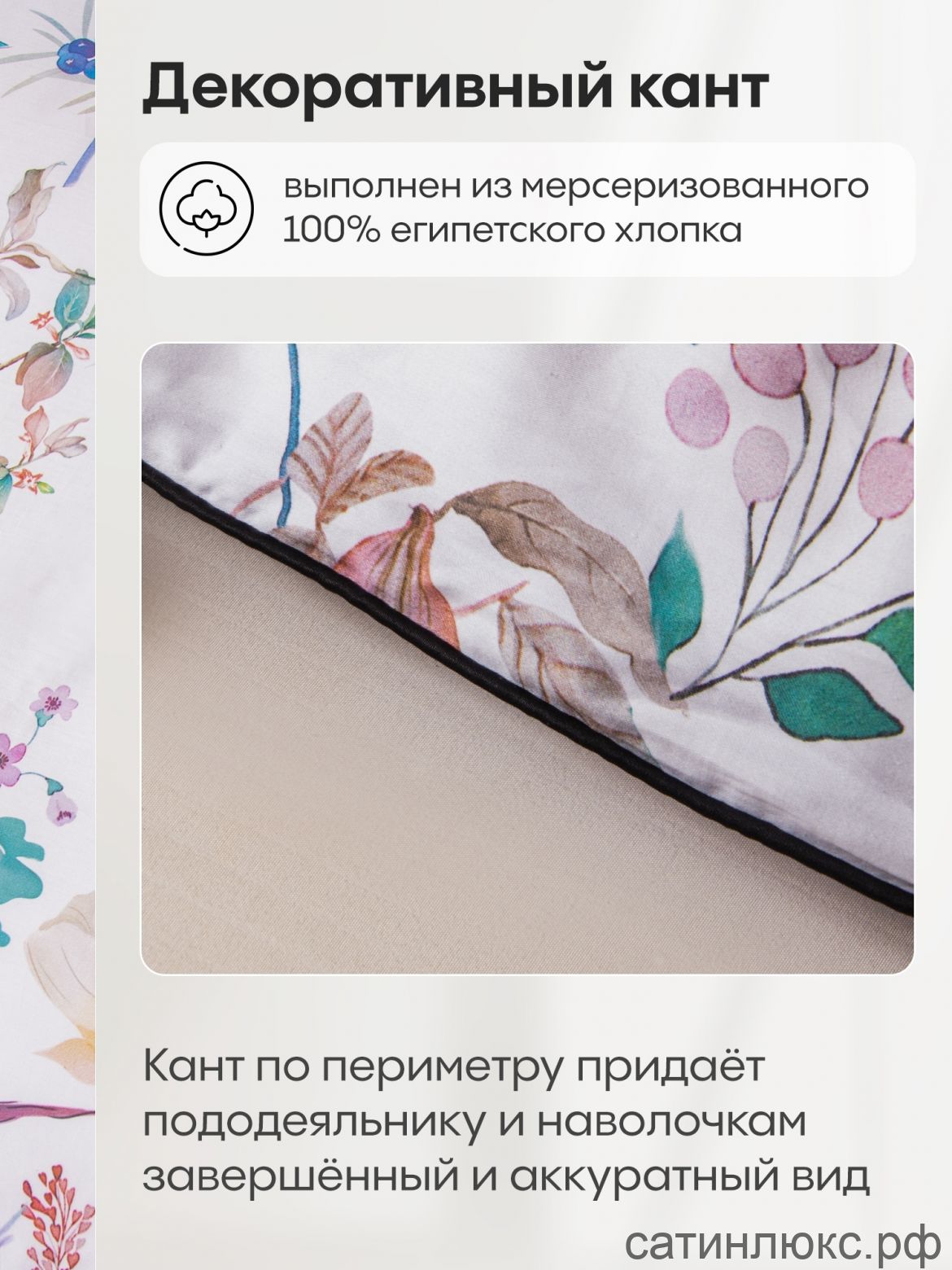 Пододеяльник и наволочки: Украшены кантом по периметру