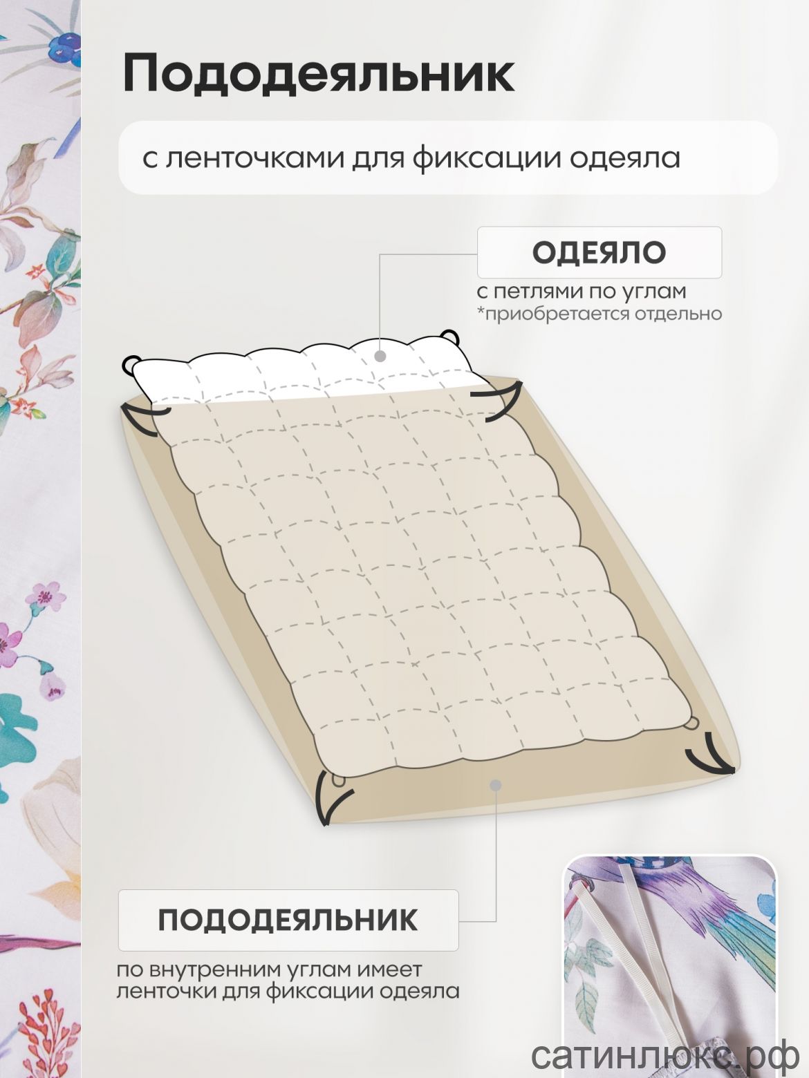 Пододеяльник: 200*220 см 1 шт. (на молнии)