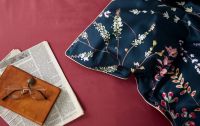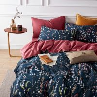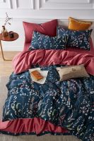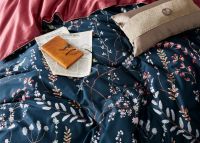 Ткань компаньон: Наволочки 50*70 с разных сторон разной расцветки, наволочки 70*70 однотонные в цвет простыни; Пододеяльник с разных сторон разного цвета; Простыня однотонная такого же цвета, как низ пододеяльника.
