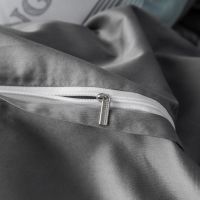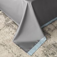 Пододеяльник (на молнии) и наволочки (с запахом/кармашком) украшены кантом по периметру.