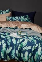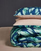 Ткань компаньон: Наволочки 50*70 с разных сторон разной расцветки, наволочки 70*70 однотонные в цвет простыни; Пододеяльник с разных сторон разного цвета; Простыня однотонная такого же цвета, как низ пододеяльника.