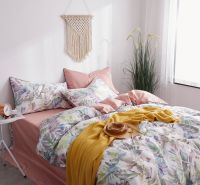 Ткань компаньон: Наволочки 50*70 с разных сторон разной расцветки, наволочки 70*70 однотонные в цвет простыни; Пододеяльник с разных сторон разного цвета; Простыня однотонная такого же цвета, как низ пододеяльника.
