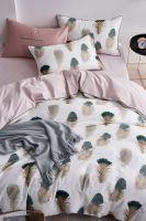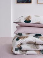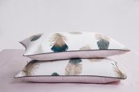 Ткань компаньон: Наволочки 50*70 с разных сторон разной расцветки, наволочки 70*70 однотонные в цвет простыни; Пододеяльник с разных сторон разного цвета; Простыня однотонная такого же цвета, как низ пододеяльника.