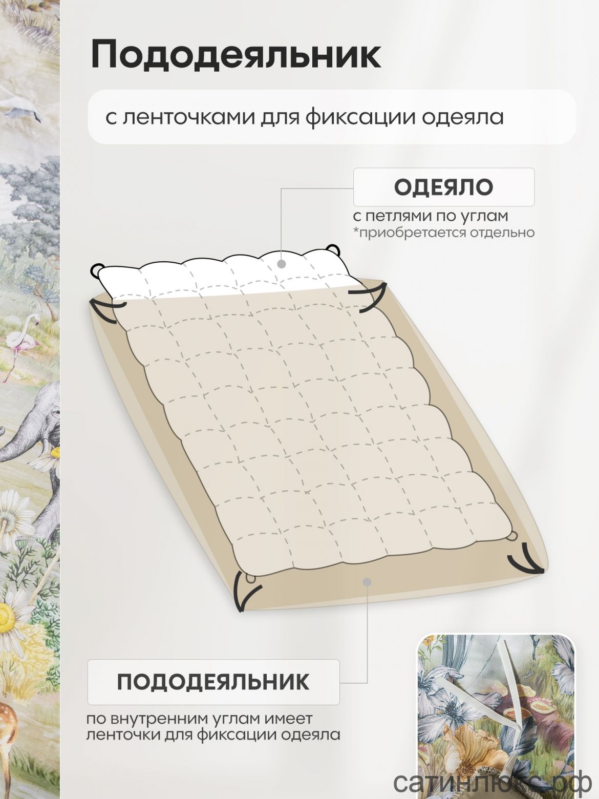 Пододеяльник: 200*220 см 1 шт. (на молнии)