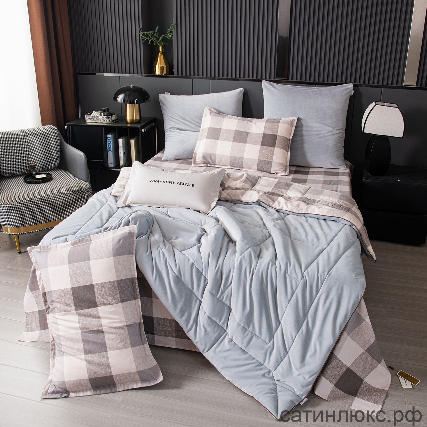 Комплект постельного белья Сатин Velouria Luxe с Одеялом - это сочетание изысканного дизайна, премиальных материалов и максимального комфорта. Вам больше не придётся тратить время на заправку одеяла в пододеяльник: его заменяет стеганое одеяло-покрывало, которое сразу идёт в комплекте и полностью соответствует дизайну белья.