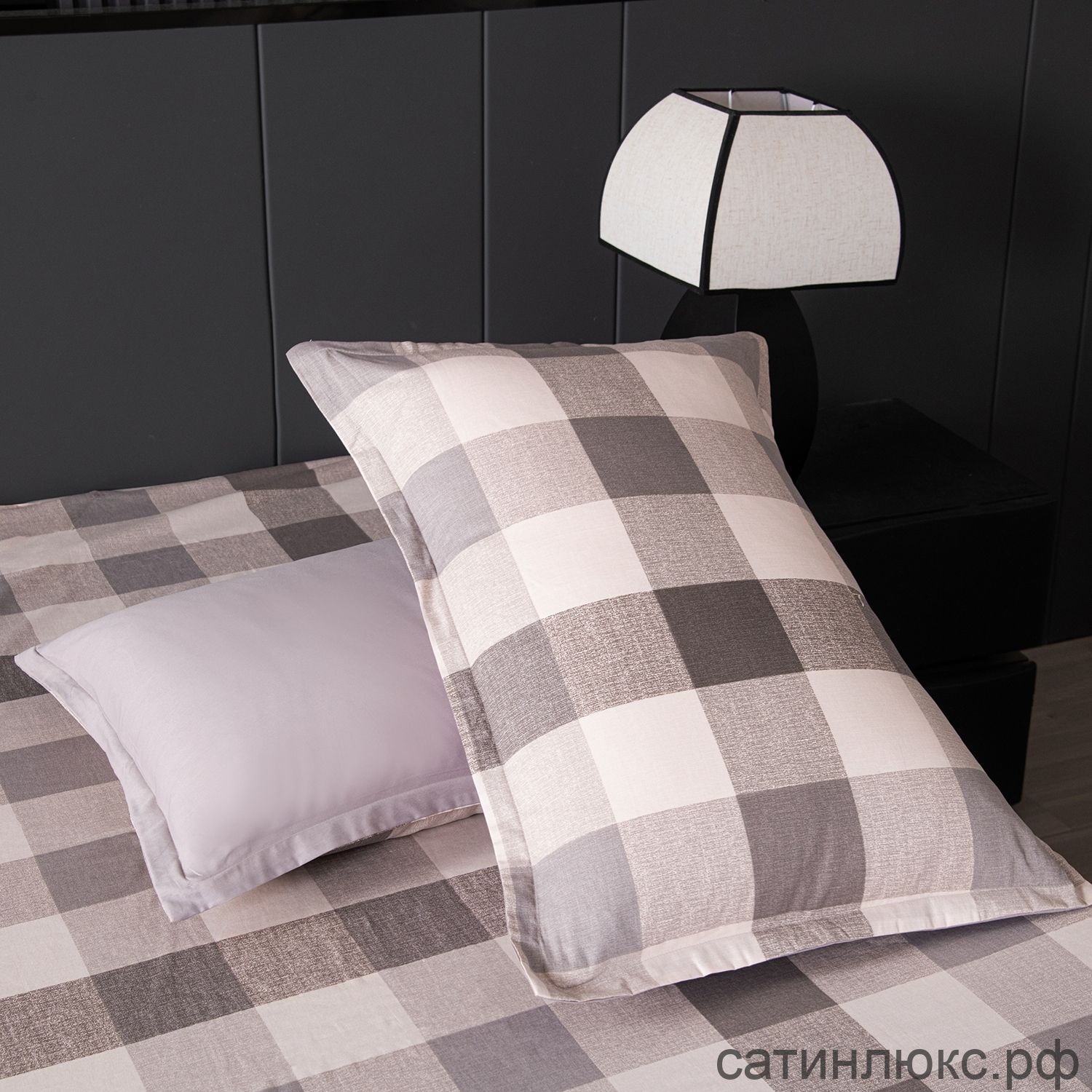 В комплект входят четыре наволочки: 50x70 см (2 шт) с запАхом (кармашком) выполнены из сатина 100% хлопка, с ушками и широким кантом по периметру; 70x70 см (2 шт) на молнии - верх из мягкого велюра, низ из сатина 100% хлопка, оформлены бархатным кантом.