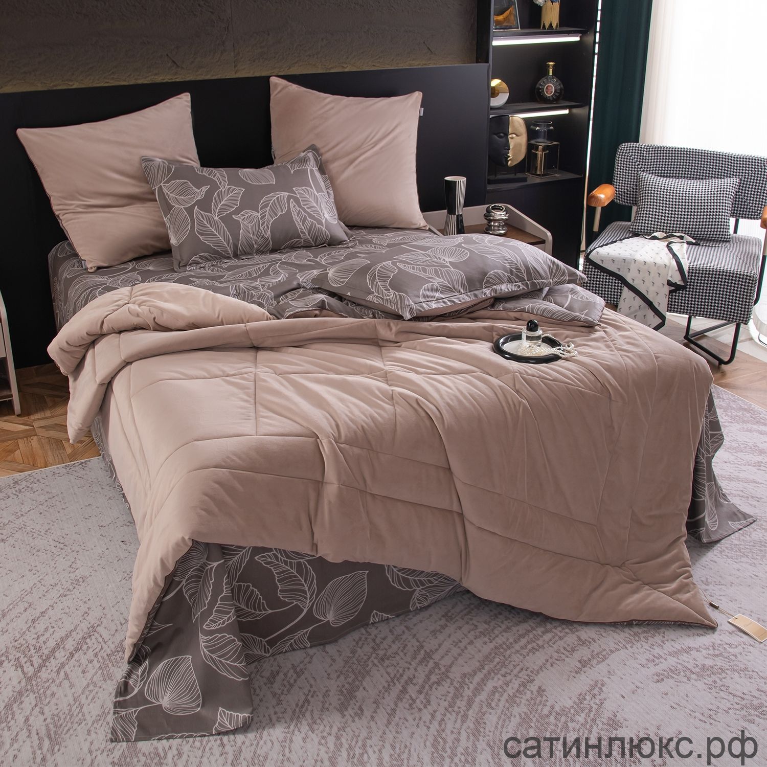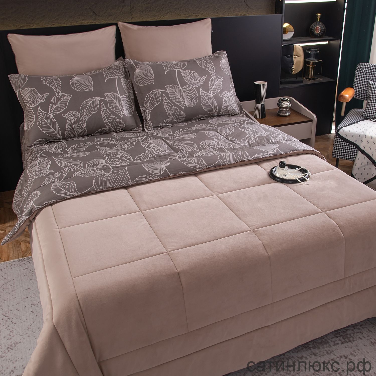 Комплект постельного белья Сатин Velouria Luxe с Одеялом - это сочетание изысканного дизайна, премиальных материалов и максимального комфорта. Вам больше не придётся тратить время на заправку одеяла в пододеяльник: его заменяет стеганое одеяло-покрывало, которое сразу идёт в комплекте и полностью соответствует дизайну белья.