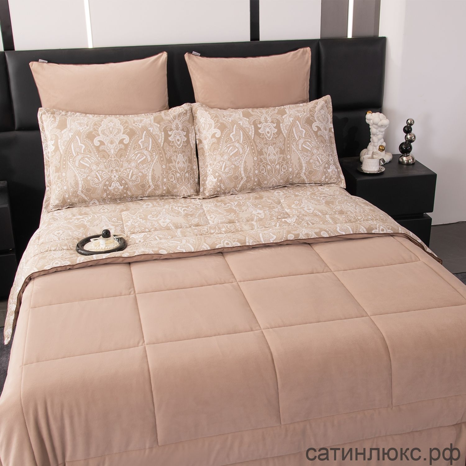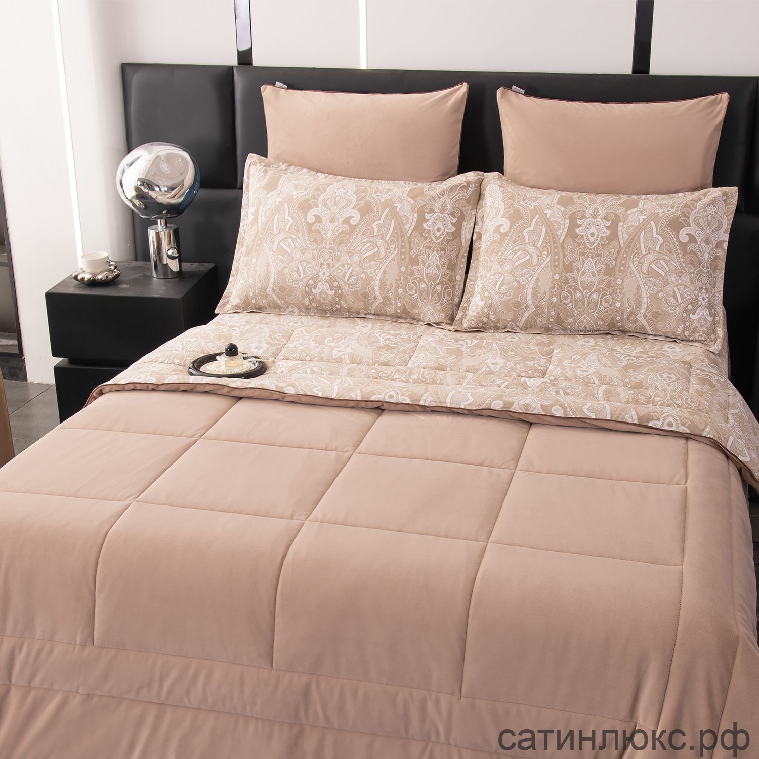 Комплект постельного белья Сатин Velouria Luxe с Одеялом - это сочетание изысканного дизайна, премиальных материалов и максимального комфорта. Вам больше не придётся тратить время на заправку одеяла в пододеяльник: его заменяет стеганое одеяло-покрывало, которое сразу идёт в комплекте и полностью соответствует дизайну белья.