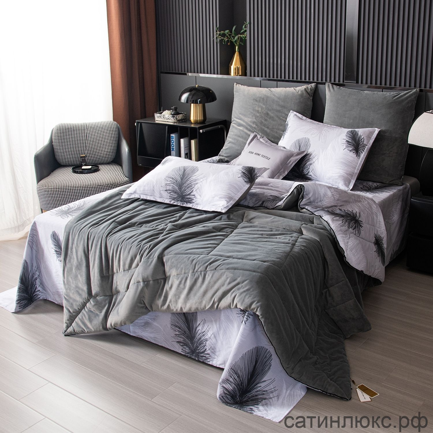 Комплект постельного белья Сатин Velouria Luxe с Одеялом - это сочетание изысканного дизайна, премиальных материалов и максимального комфорта. Вам больше не придётся тратить время на заправку одеяла в пододеяльник: его заменяет стеганое одеяло-покрывало, которое сразу идёт в комплекте и полностью соответствует дизайну белья.