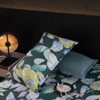 Ткань компаньон: Одеяло и наволочки 70x70 с разных сторон разной расцветки и ткани; наволочки 50x70 с разных сторон разной расцветки (принт/однотонный); простыня такого же цвета, как низ одеяла.