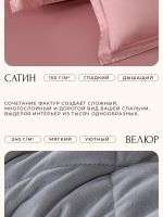 Сатин Velvet Premium с Одеялом - это коллекция для тех, кто ценит сдержанную элегантность и безупречное качество. Однотонный сатин из мерсеризованного 100% египетского хлопка в сочетании с мягким велюром создаёт утончённый образ спальни и дарит ощущение роскоши каждый день.