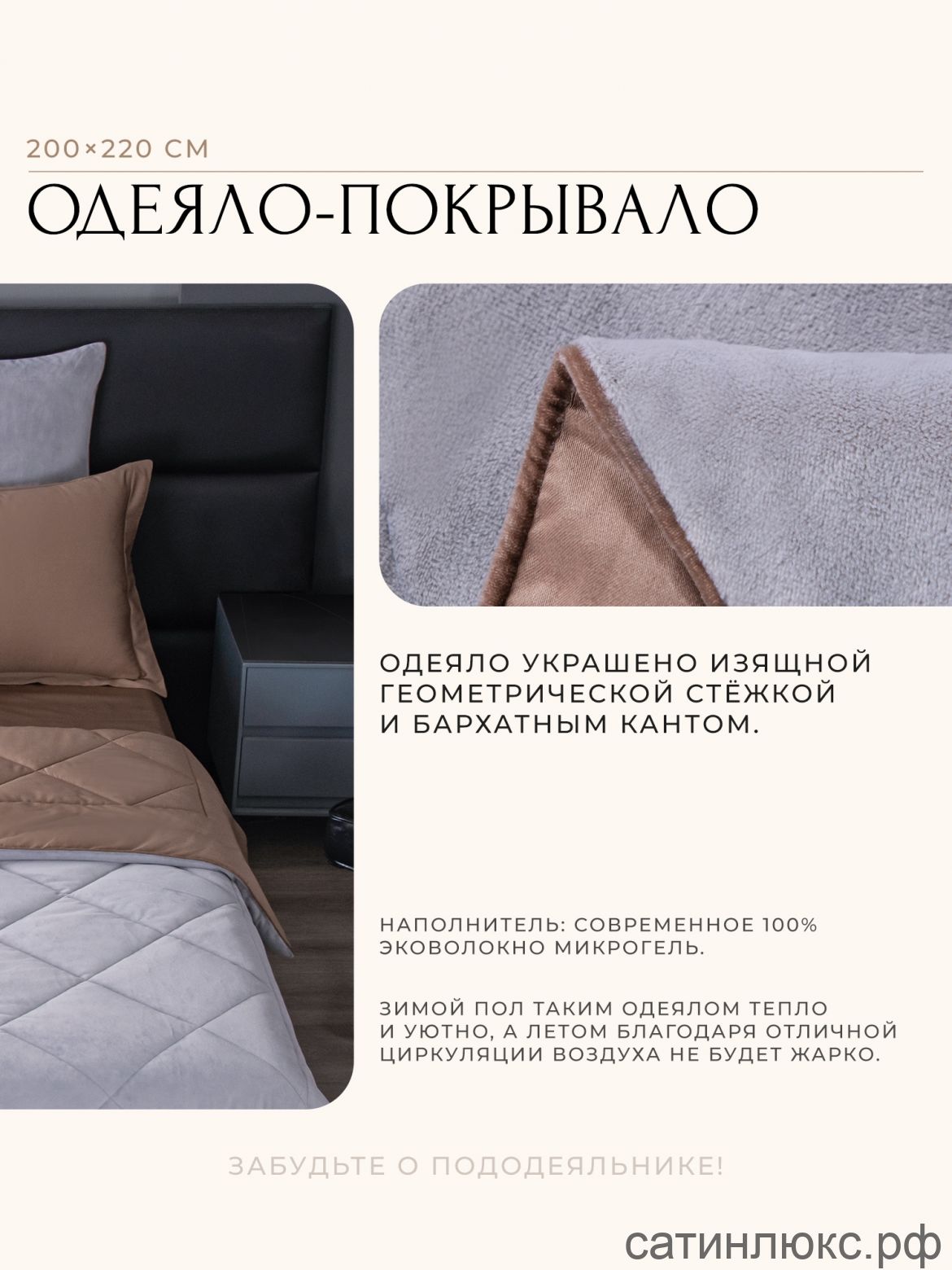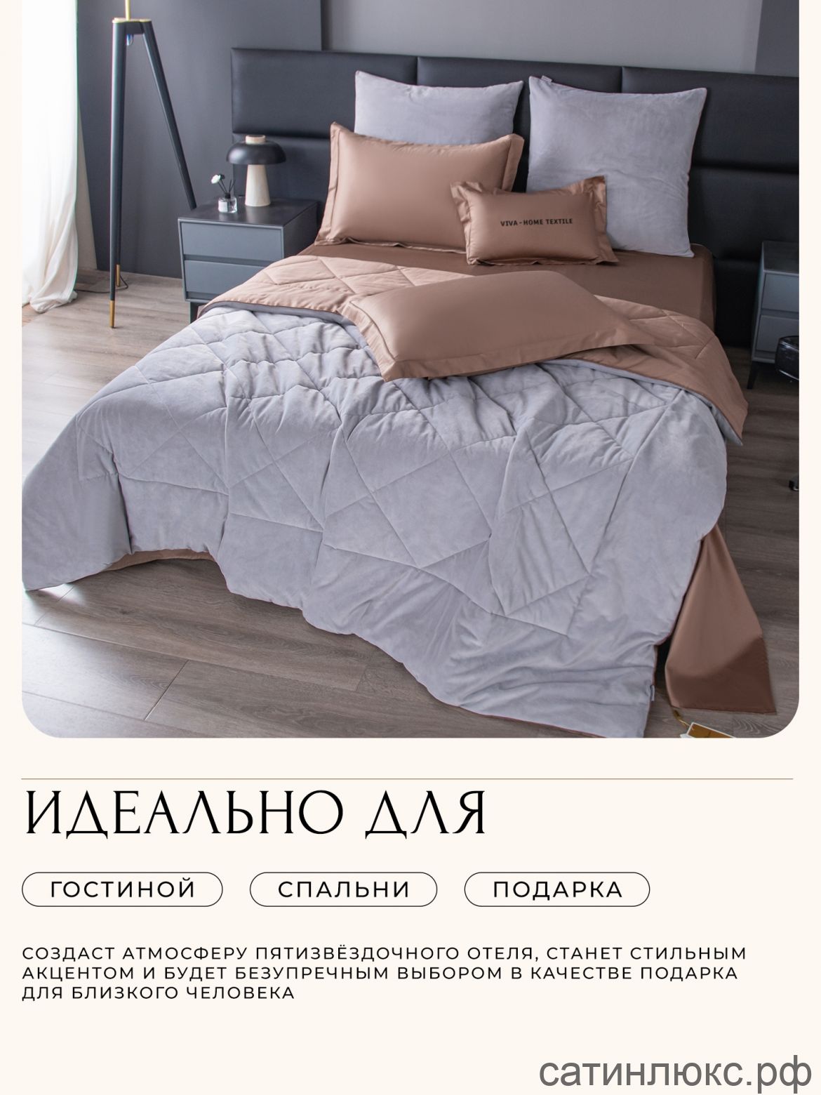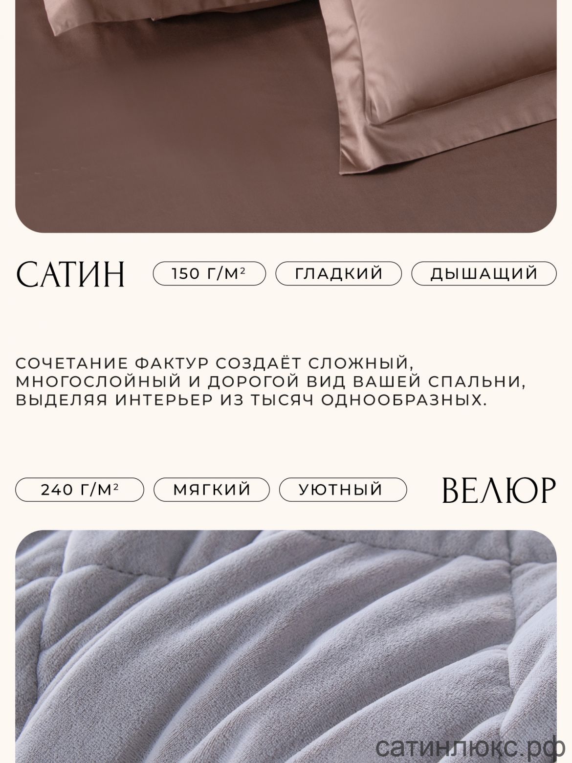 Сатин Velvet Premium с Одеялом - это коллекция для тех, кто ценит сдержанную элегантность и безупречное качество. Однотонный сатин из мерсеризованного 100% египетского хлопка в сочетании с мягким велюром создаёт утончённый образ спальни и дарит ощущение роскоши каждый день.
