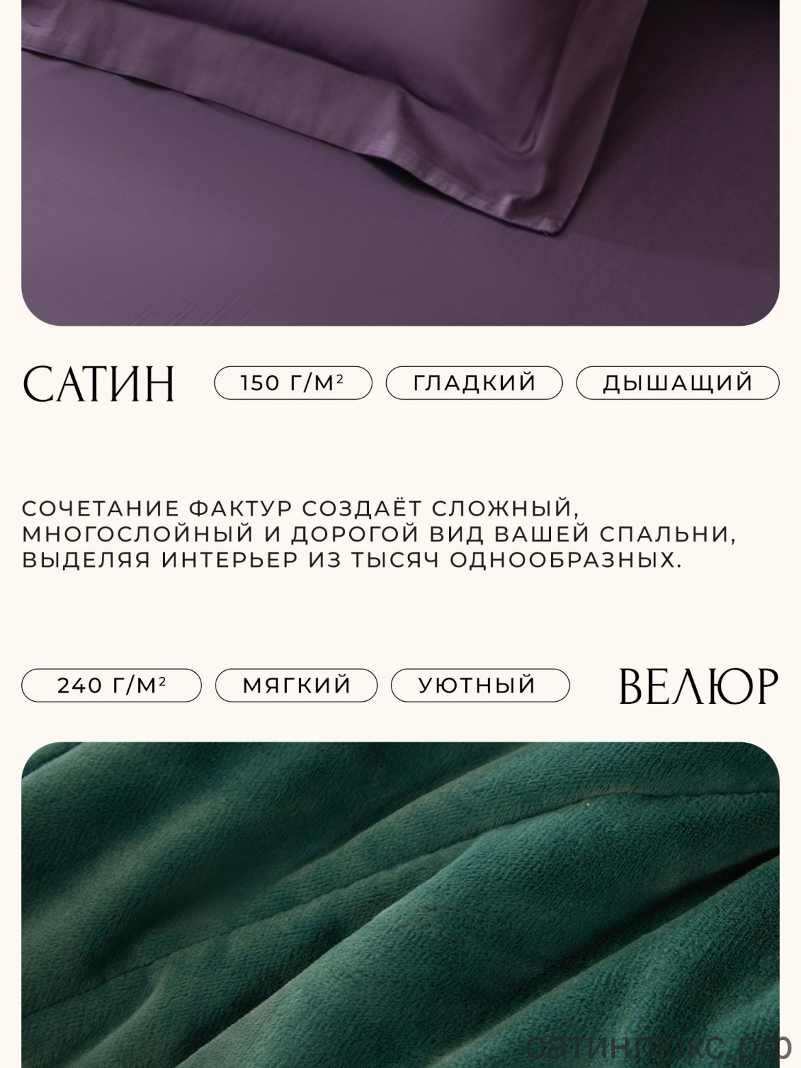 Сатин Velvet Premium с Одеялом - это коллекция для тех, кто ценит сдержанную элегантность и безупречное качество. Однотонный сатин из мерсеризованного 100% египетского хлопка в сочетании с мягким велюром создаёт утончённый образ спальни и дарит ощущение роскоши каждый день.