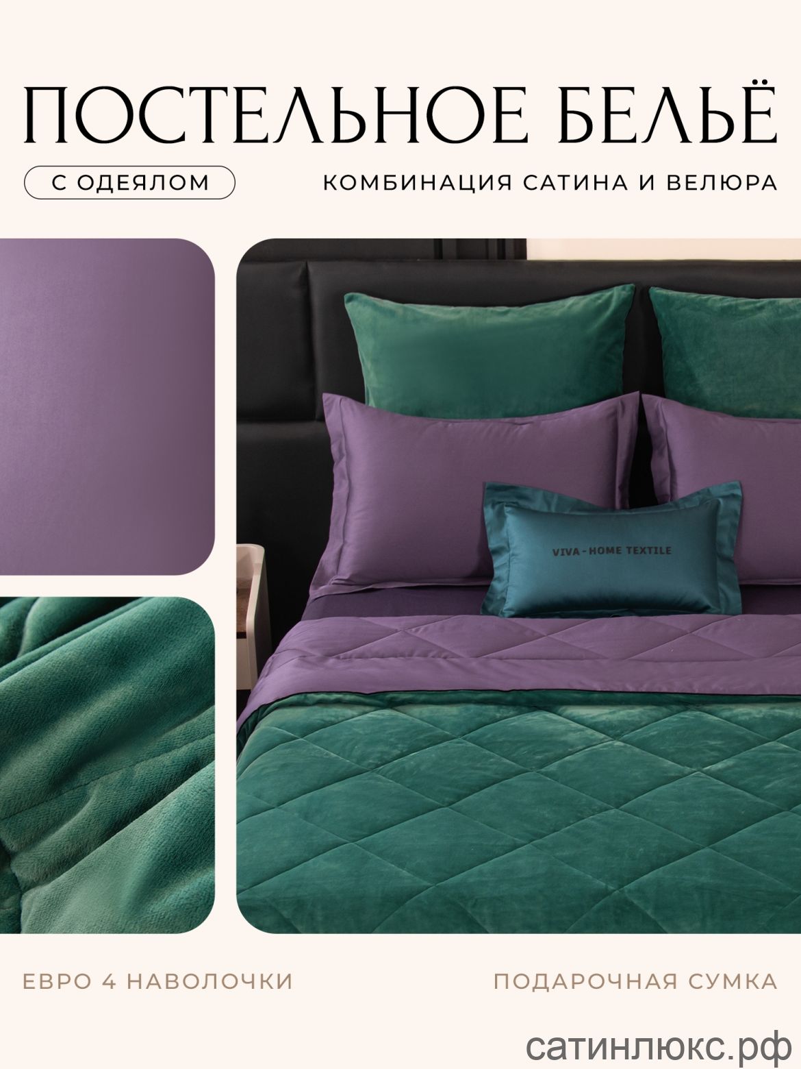 Особенность комплекта - наличие стёганого одеяла-покрывала, полностью готового к использованию. Вам не понадобится пододеяльник: одеяло сразу идёт в комплекте и идеально сочетается с постельным бельём, что делает уход за ним максимально удобным.