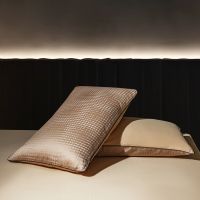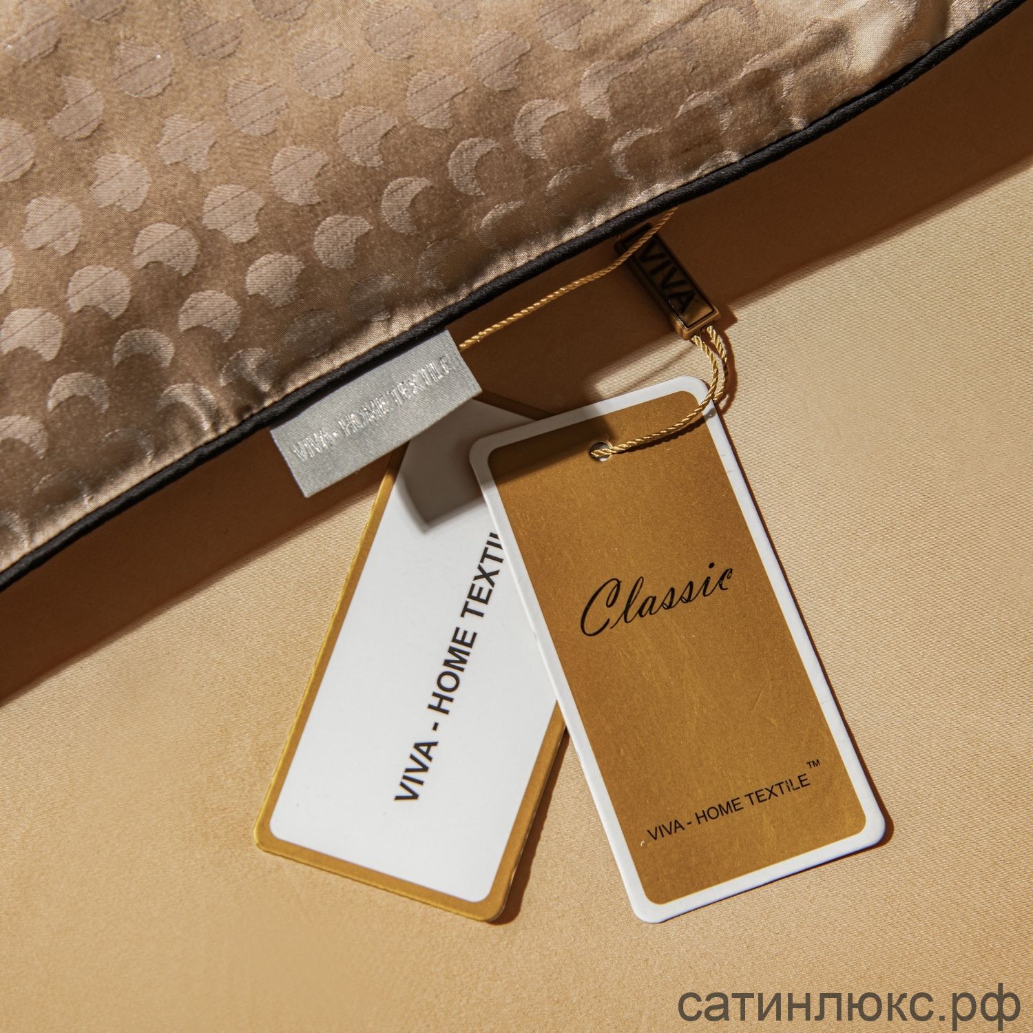 - Наволочки 50x70 выполнены с разных сторон из разных тканей: лицевая сторона - жаккард с золотыми нитями, оборотная - гладкий сатин.