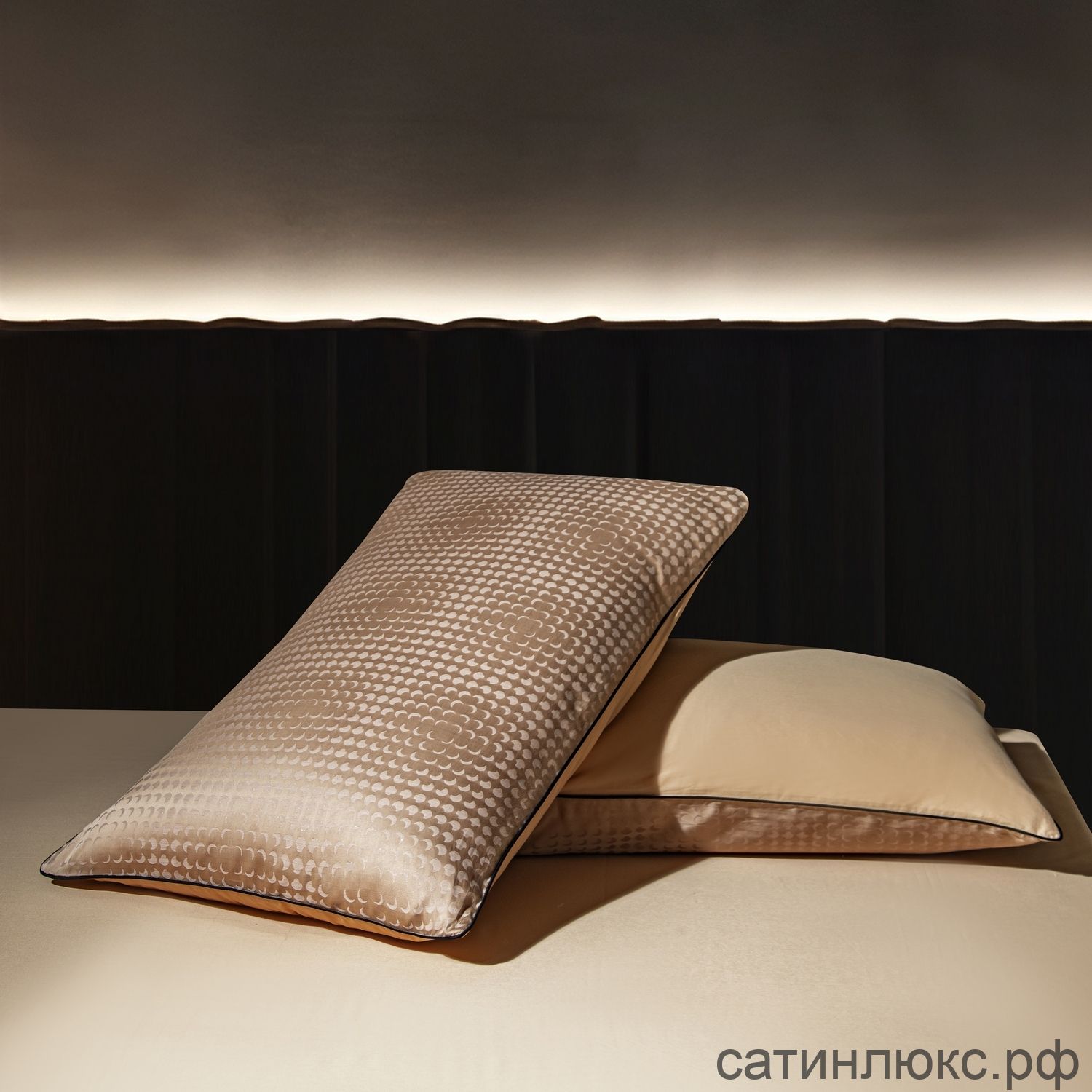 Гладкий сатин из 100% египетского мерсеризованного хлопка идеально дополняет жаккард: он шелковистый на ощупь, хорошо пропускает воздух и поддерживает комфортный микроклимат во время сна. Натуральный состав делает ткань гипоаллергенной, приятной к телу и подходящей для ежедневного использования.