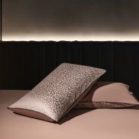 - Наволочки 50x70 выполнены с разных сторон из разных тканей: лицевая сторона - жаккард с золотыми нитями, оборотная - гладкий сатин.