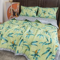 Стеганое одеяло-покрывало из бамбукового волокна прекрасно подходит для людей с чувствительной кожей. Антибактериальные свойства бамбукового волокна не снижаются даже после нескольких десятков стирок. Зимой под таким одеялом тепло и уютно, а летом, благодаря отличной воздухопроницаемости, совсем не жарко. Бамбуковые волокна прекрасно впитывают влагу и быстро сохнут благодаря пористой структуре.