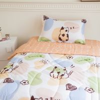 Наволочка с запахом и с кантом по периметру. Одеяло-покрывало стеганое с нетканным материалом для удержания наполнителя.
