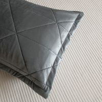 Геометрический узор на покрывале выполнен с использованием термостежки, что придаёт изделию особую изысканность и подчёркивает элегантность интерьера.